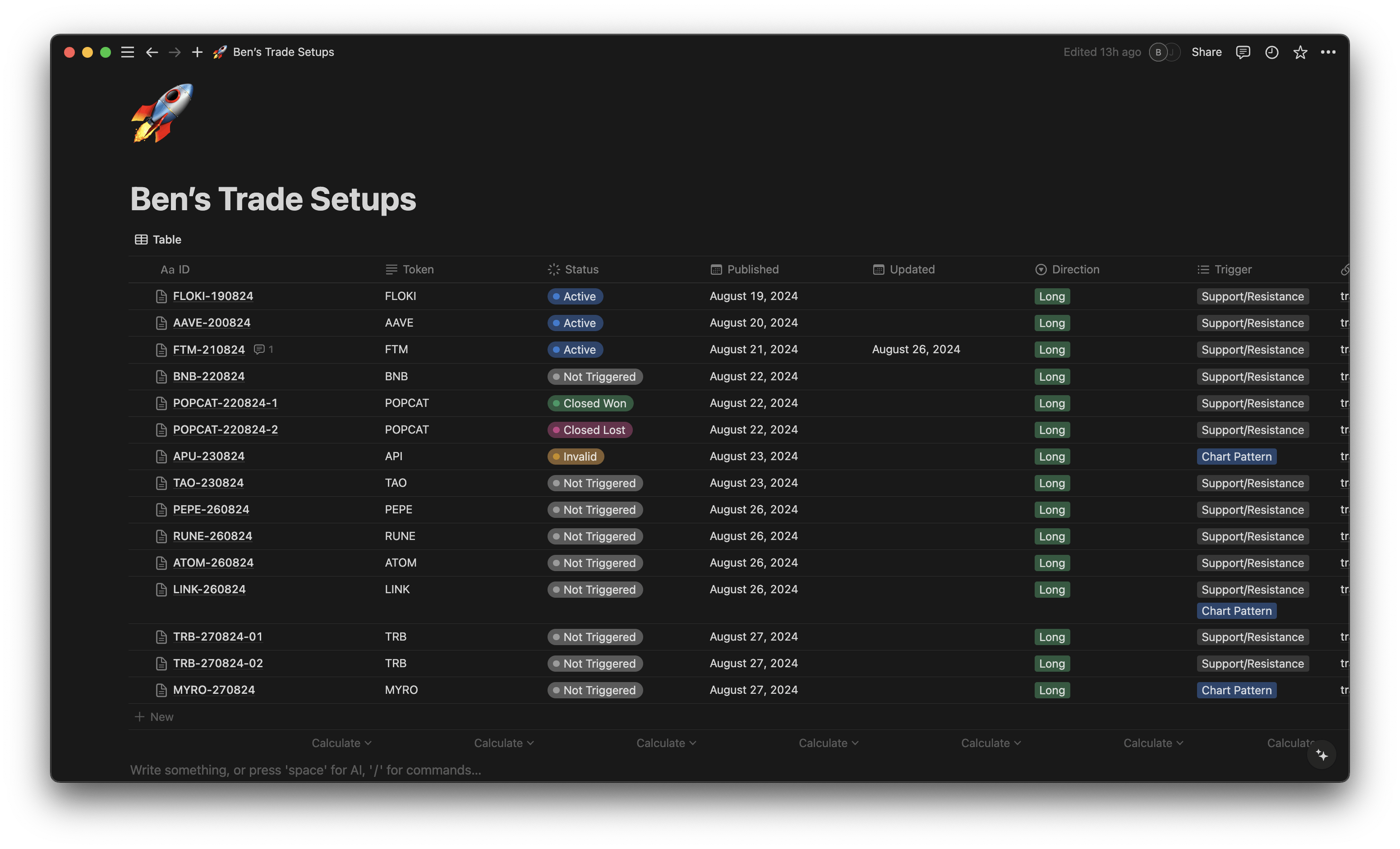 Just yesterday, I launched our brand-new Trade Database—a comprehensive resource packed with detailed insights for all our current and past trade setups.