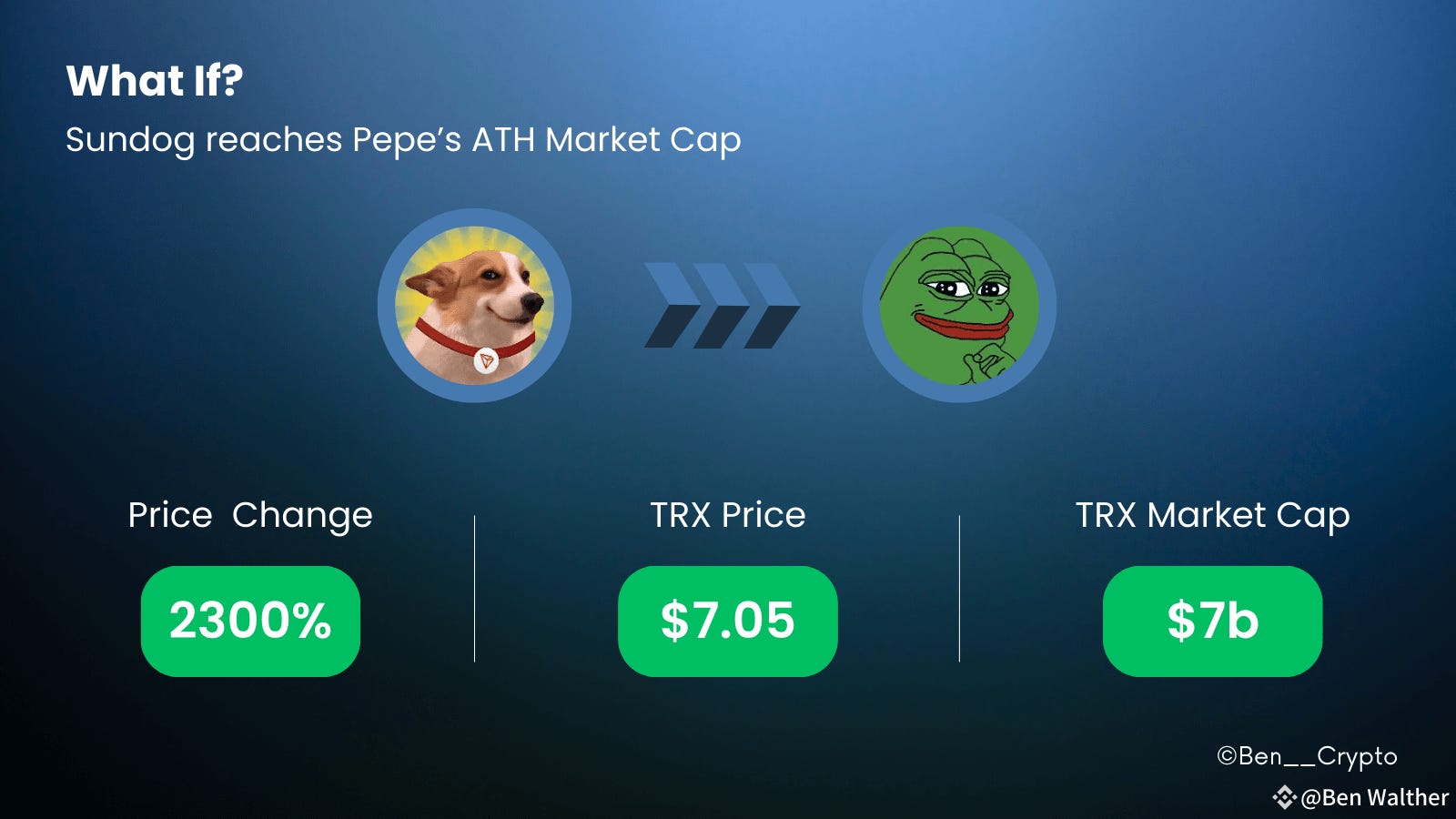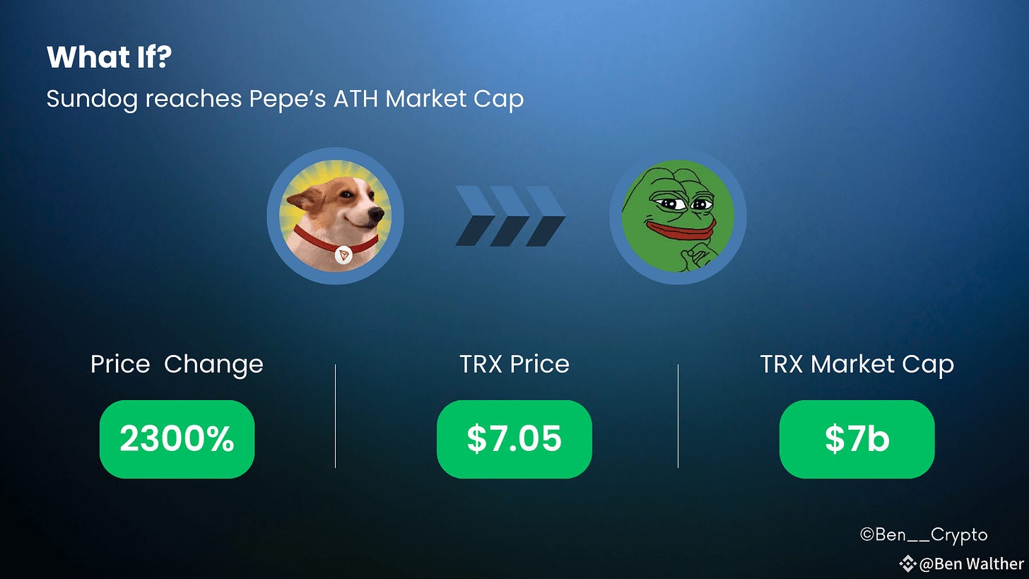 So, I did the math and calculated the value of SUNDOG if it reached Pepe's market cap. Of course, this is hypothetical — although not wholly unrealistic.
